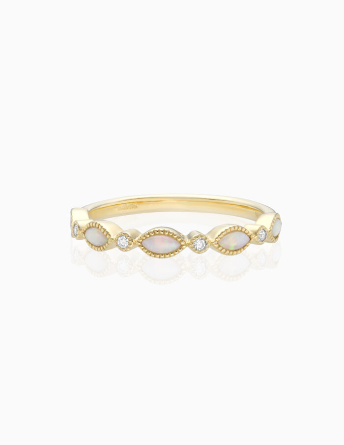 9ct Opal & Diamond Milgrain Ring